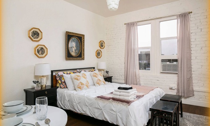 Step into vintage-inspired comfort with this charming unit, featuring Victorian touches, tall ceilings, and wood floors. Budget-friendly and centrally located, it’s perfect for one or two guests looking to explore LA in style.