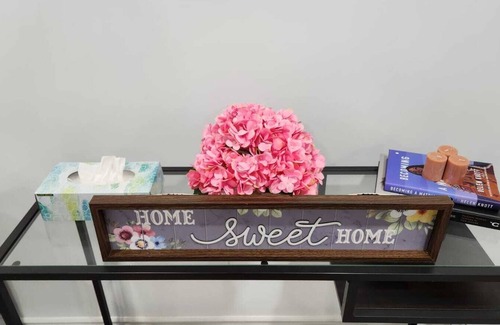 Beautifully decorated with a stunningly unique italian marble white and grey tiled bathroom. This one bedroom apartment is truly warm, bright, and cozy with a comfortable luxury queen-sized bed. This is your place to call home for as long as you stay.
