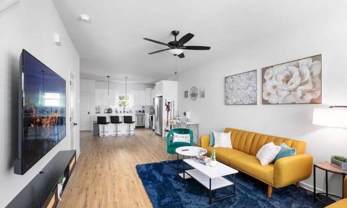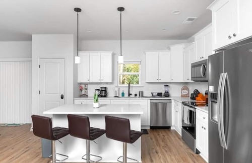Modern & Central: close to the airport, Uptown, and vibrant SouthEnd, discover our brand-new home. Relax in the outdoor hot tub, enjoy our private fenced yard, or have fun in the game room. Combining style, comfort, and prime location, it's the perfect queen city getaway.