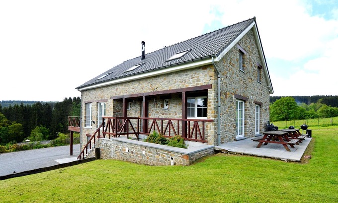 This luxurious holiday home has 9 bedrooms which can accommodate 20 people. Located in the Trou de Bra region in Belgium, the peaceful countryside and the dazzling view of the lush green forests and hills combine to give you the most relaxing vacation. Those who love sports won't be disappointed either. You can go rafting, mountain biking, fishing, horseback riding, rock climbing, abseiling and if there is enough snow, skiing. History lovers will find many war monuments and churches in the area. The Castle of the Counts of Salm, built in the 9th century, is also nearby, as is the Doyards lake. Restaurants can be found within 3 km of the house, and you can buy supplies 12 km away. This holiday home in Lierneux has a garden with furniture and a terrace with a barbecue. It is child-friendly and has 2 children’s beds and a high chair. You're allowed to bring up to 3 pets for € 2 per pet, per night. Liège Airport is 54 km away.
