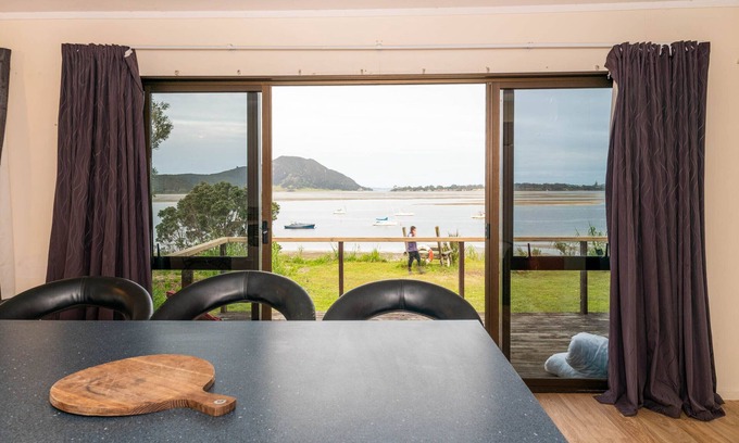 3 bd house, private, with access via a small path down to waters edge. 180° views of Houhora harbour. Large flat lawn with ample space for parking cars and boats. 3min walk to Pukenui shops, restaurant bar & Boat ramp.