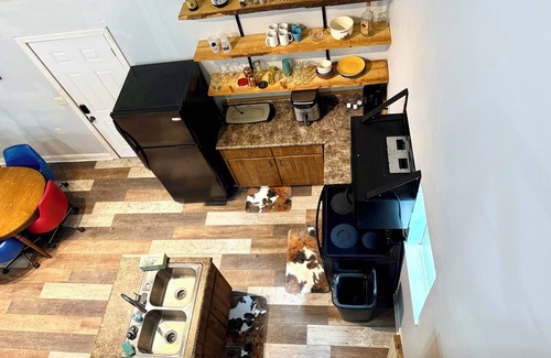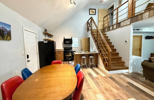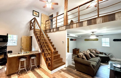 • 1 loft-style bedroom (plus 2 queen air mattresses for extra guests)