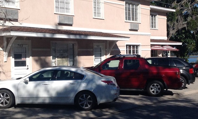 Directly in front of your entrance @ 701 Congress St. are two parking spaces, one each for Suite A & B. More parking is available behind the Cafe. There is one boat or RV parking spot on the corner of Congress & Scott St.