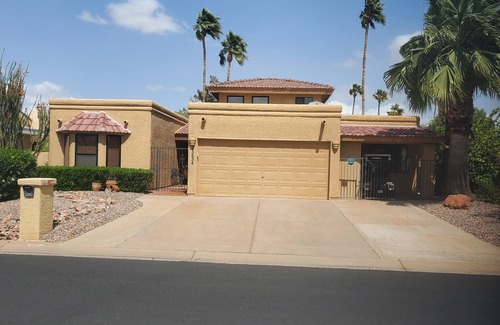 LOVELY HOUSE NEXT TO COTTONWOOD CLUB HOUSE IN SUN LAKES, AN ADULT COMMUNITY. THE HOUSE IS FULLY FURNISHED WITH F/P, 2 TVs, HI SPD INTERNET & PRIVATE POOL. A CAR & GOLF CART ARE PROVIDED. THE USE OF ALL AMENITIES IN SUN LAKES, 5 1/2 GOLF COURSES, NEW FITNESS CENTER, POOLS, RESTAURANTS AND GAME FACILITIES. A GOLFERS AND FUN SEEKERS DREAM AREA. CONTACT OWNER FOR MORE DETAILS.