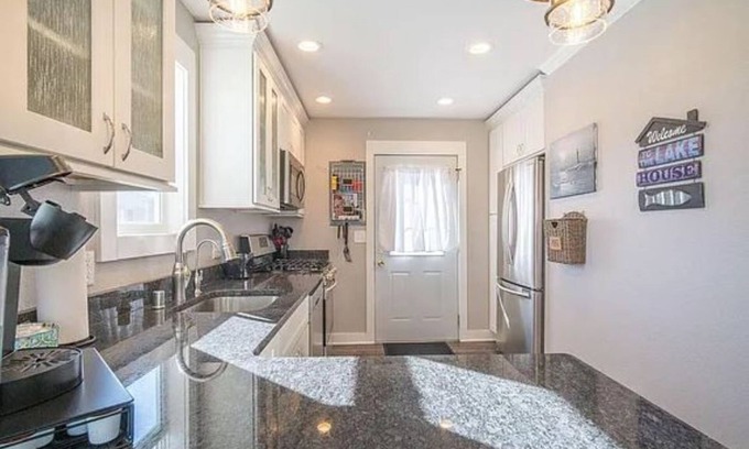 Welcome to this beautifully remodeled 2 BR, 1 BA lake house located on Tichigan Lake & the Fox River in Waterford, WI. The perfect weekend get-away! The house has a queen bed (BR1), a twin XL over queen bunk bed (BR2), and 2 pullout couches (LR and Nook) to easily sleep up to 9 guests. Enjoy Panoramic views of the lake with tons of windows and natural light. New deck and patio added in 2024!