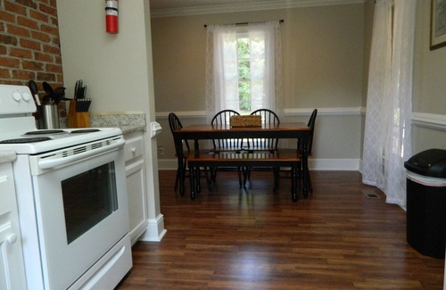 Amenities include 5 bedrooms, 2 full baths (King master suite on main level), full size kitchen, open concept living and dining room, laundry room, sunroom with wet bar, and outdoor patio area. Home has been newly furnished and kept meticulously clean. Enjoy the beautiful gardens on the property as well as seasonal tours of the Gordon Lee Mansion, built in 1847. (Contact friendsofthegordonleemansion.org for tour dates.)