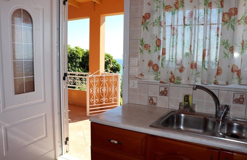 Small, functionally furnished semi-detached house with its own separate entrance, accessed directly from the street via an external staircase. The bathroom and bedroom are adjacent to the kitchen. Direct access to the covered entrance terrace from the kitchen and bedroom.The centrepiece of the DYONISIS flat is the beautifully landscaped, sheltered terrace with a small front garden in front of it and uninterrupted, sweeping sea views.