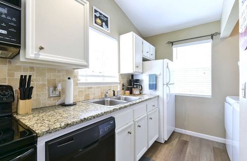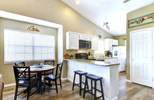 The living room is great for lounging around after a day of exploring the area. You can relax on the comfortable couch while watching your favorite shows on the large flat-screen TV or gather around the table for a board game competition with the kiddos. You'll also have access to high-speed Wi-Fi throughout the condo.