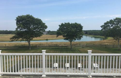 Sit back and relax in this chic, recently renovated and expanded, beautifully furnished six-bedroom home overlooking the stunning meadow in Deep Bottom Pond. Situated on 3 acres, this large private home boasts expansive outdoor living with a 22’ x 48’ heated salt water pool and spa, a vast manicured lawn, and basketball hoop in driveway. With many areas to gather and relax inside, the house has a bright living room with double height ceilings, a large comfortable family room with 75” tv, a cozy den with tv, and a basement tv lounge area/playroom. For sleeping, there are six bedrooms: 1 Primary Suite, 1 king, 1 king + 1 twin, 1 king + daybed, 1 king + sleeper, and 1 with 2 fulls. Access to Deep Bottom community tennis courts included.