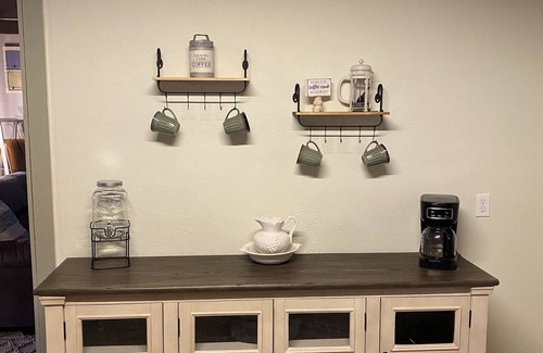 - Frontier-style cabin with kitchen & wood stove.