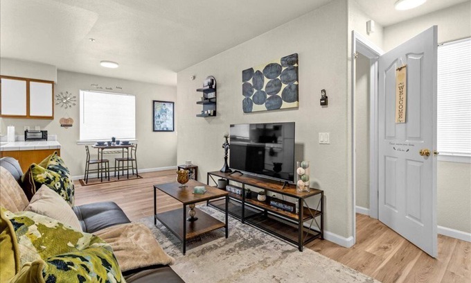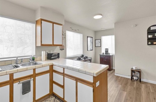 Tucked away in a peaceful residential enclave of Salinas, this recently upgraded one-bedroom retreat offers stylish comfort and unbeatable value for travelers exploring the Central Coast. Thoughtfully furnished and filled with natural light, the open-concept layout features a cozy living area with a 55" Smart HDTV, dining space, and a full kitchen equipped with all the essentials—stove, refrigerator, microwave, coffee maker and more.