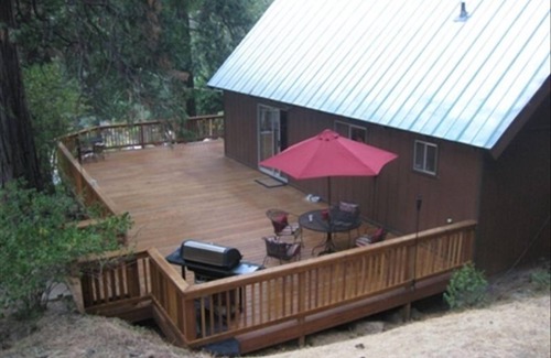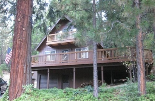 Cabin is newly remodeled with granite counter tops, tile flooring, carpet, stainless steel appliances, and gorgeous redwood decking with romantic evening low-lights, all which backs up to scenic National Forest. Sleeps 8 comfortably with all house hold furnishings. Our friends laugh when we say it's a cabin because they describe our cabin as a luxurious home in the woods with all the amenities one could want. All we ask is that you treat our place like your own! We host to meet all your vacation needs!
