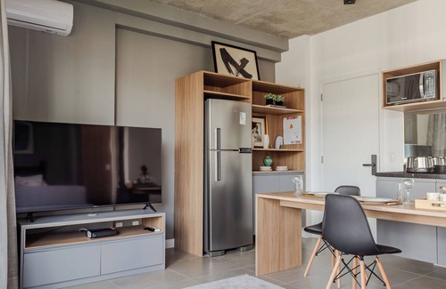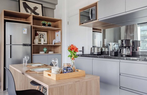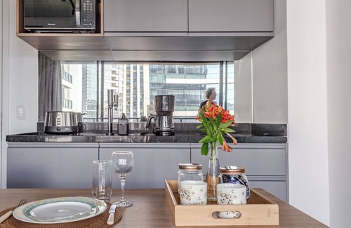 Nestled in São Paulo, this 1-bedroom, 1-bathroom apartment brings it all within your reach. Fans of nature and the outdoors will love being 5 minutes by car from Ibirapuera Park and 5 minutes from Shopping Eldorado. Brigadeiro Faria Lima Avenue is just steps away while JK Iguatemi Shopping Mall is an easy 15-minute walk away.