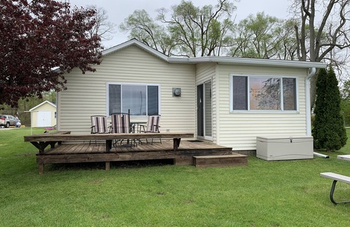 Wonderful cottage for making memories! Relaxing 2 bedroom recently renovated lakefront cottage with great views of the lake just feet away. A full frontal deck and a nice 60 foot dock reaches out to beautiful Matteson Lake, just 9 miles west of Coldwater, MI. Matteson is a 300 acre all sports lake that provides great swimming, boating and fishing. Cottage provides all the items needed to have a relaxing peaceful week. 2 kayaks are provided for renters and Cottage is Ideal for a couple or small family to enjoy. Swimming in front of cottage is good for all ages as Lake is shallow and waist high at end of dock.