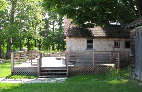 Quaint cottage in Southern Berkshire nestled in the historic district of New Marlborough. Cottage sits on 3 acres all of which is well maintained. Available for the fall foliage season. Full kitchen and bath. Sleeping area in loft sleeps two. Queen size sleeper sofa serves as additional sleeping for guests. Cottage surrounded by 1,000 sq ft cedar deck on 3 sides. Goshen stone patio and grilling area. 140' rock wall accentuates the property. Cottage is walking distance to Inn on The Green and New Marlborough Grange. 5 minutes to Butternut Ski area. Land trust across the street from cottage. Outdoor smoking only. Culligan water sulfur filtration tank provides clean water with no smell to the entire house. The stairs to the upstairs bedroom can be challenging to for older people or people with physical limitations.