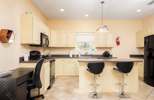 Kitchen is fully stocked for cooking with pots, pans and utensils plus some items like spices and oil etc. The stove and oven are electric. Saint Augustine recycles so we provide an eco-friendly recycling can. We have a full size washer and dryer with detergent for washing.