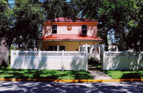 Tropical home, walking distance to wedding sites, Lightner Museum and White Room. Five minutes from the beach and 20 minutes to world-class PGA golf courses. Hip Lincolnville location with beautiful courtyard garden. Flagler College, Saint Augustine distillery and Ice Plant are around the corner. Private gated parking for 2-3 cars. History, golf and beach all from one location
