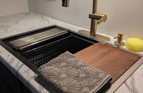 Features a plush queen bed and a pullout couch for an additional guest. Full bath , stylish kitchen, and a spacious living area including a 55 inch TV with streaming capability.