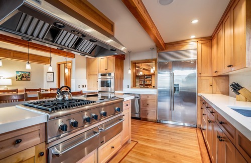 This inviting home boasts numerous amenities ensuring comfort and elegance. The large gourmet kitchen, equipped with a commercial gas range and multiple islands, is perfect for hosting pre-wedding gatherings or intimate family dinners. Multiple living spaces, including cozy fireplaces and a dedicated den, allow your guests to unwind after a day of festivities, while the private hot tub offers a relaxing retreat under the stars. The thoughtful layout includes diverse bedding configurations appealing to all guests, making it a functional yet beautiful space for your wedding celebration.