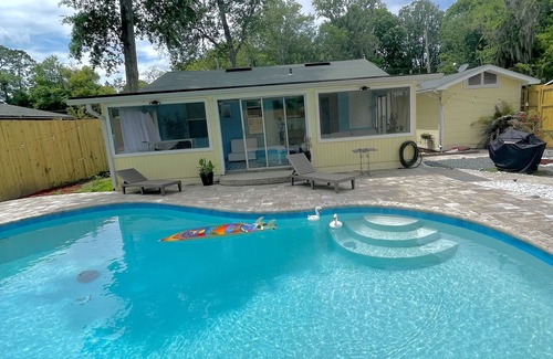 Welcome to Murray Hill, Jacksonville FL. Relax with the whole family at this peaceful place to stay. Situated on a quiet street in historic Murray Hill/ Avondale. This bungalow with a brand new swimming pool offers a home away from home. Sit back and relax in the spacious lanai while listening to sounds of nature.