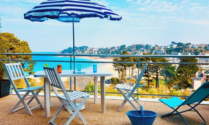 Perros-Guirec, sea view, beach 100m, private parking, wifi. | Apartment in Perros-Guirec