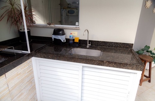 Excellent single storey house in Peruíbe, 7 min walk from the beach in the Oasis neighborhood. There are 3 bedrooms, 2 bathrooms, one suite, all with ceiling fans, large comfortable living room, full kitchen, barbecue. Sleeps 10 people, medium sized car garage in a prime and safe neighborhood, next to Extra, Mc Donalds, Habib's, restaurants, and several other trades. City with several tourism options and beautiful beaches with kiosks that offer drinks and typical foods. Those who know always come back.