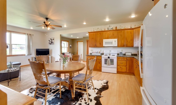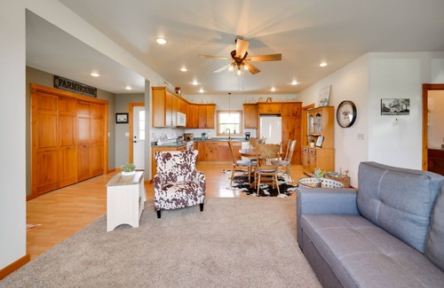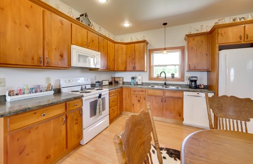 Find a country living dream at this 2-bedroom, 1-bathroom home. This Peshtigo vacation rental is right next door to the owner’s 5th-generation dairy farm, with 450 cows and farm products like beef and pork cuts available at the farm store on-site. Enjoy heated floors, spacious and sunny interiors, and sprawling views of the Wisconsin countryside. Visit North Bay Shore Park for stunning scenes of Green Bay, do some kayaking down the Peshtigo River, or stay in for a calm night by the fire pit.
