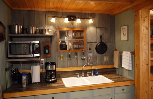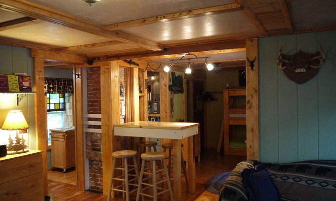 The Bears Den is one of four adventure rentals located in North Conway. The Bears Den is a cozy open concept area with a cabin theme, it is tailored for couples and small family's, the bunks are smaller and meant for children under 4ft tall, you will find a fully stocked kitchen a comfortable queen bed, We provide a fresh mattress pad, you are responsible for bringing your own sheets blankets and pillows. Bedding can be provided for an additional charge per bed