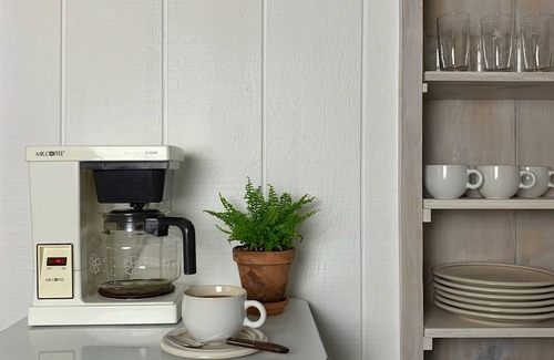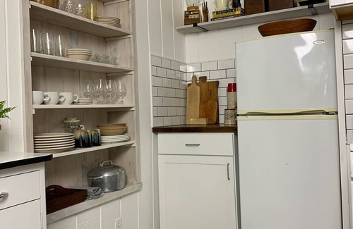 Our retro-styled apartment is located in the rear of the house where you have full views of the spacious back yard. There are two large rooms -- one includes a full kitchen & dining area, where we have lots of cookware as well as the basics so you can start cooking! The other room is the combined bedroom & living space with large windows overlooking the back yard, high ceilings and exposed beams -- bedding & sheets provided as well as blackout curtains. The bathroom includes a standing shower and we are fully equipped with toiletries and an extra toothbrush in case you forgot!