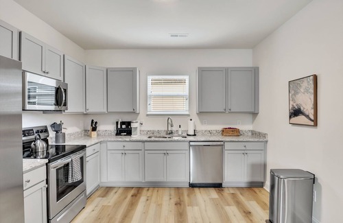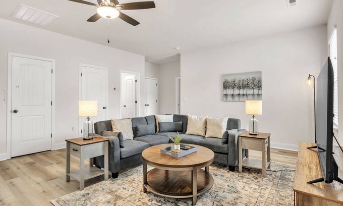 Charming 2BR/2BA home, just 1 mile from Downtown Greer & 30 mins to vibrant Downtown Greenville. This beautifully designed single-level retreat offers a cozy stay for up to 4 guests. Each bedroom boasts a comfy King bed, ensuring a restful night. Enjoy the shared community fire pit for memorable evenings with loved ones. Experience the perfect blend of comfort, style, and convenience in this inviting haven, nestled near the heart of two thriving cities. Book now for an unforgettable stay!