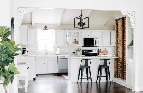 As soon as you step foot in this recently restored historic house, you're greeted by a stylish yet highly relaxed living area. It is decorated in an elegant manner that complements the historic Main St. location.