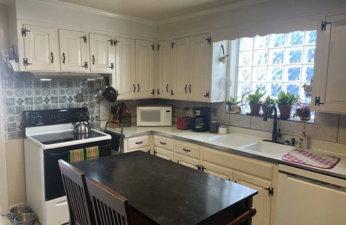 Plates, utensils, glasses, and refrigerator are all available for use in the kitchen. We ask that guests refrain from helping themselves to items in the refrigerator or pantry, however.