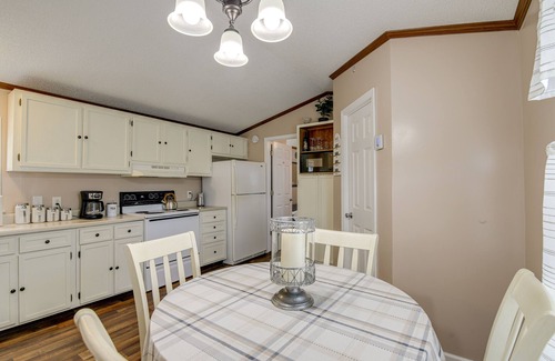 MAIN FEATURES: Smart TV w/ cable, dining table, ceiling fans, private yard, furnished porchKITCHEN: Refrigerator, stove/oven, dishware/flatware, cooking basics, drip coffee maker, microwave, toaster, ice maker, CrockpotGENERAL: Linens/towels, iron/board, trash bags, paper towels, hair dryer, complimentary toiletriesFAQ: Pet fee (paid pre-trip), access only by stairs, single-story home, homeowner on-sitePARKING: Gravel driveway (4 vehicles), trailer parking allowed on-site