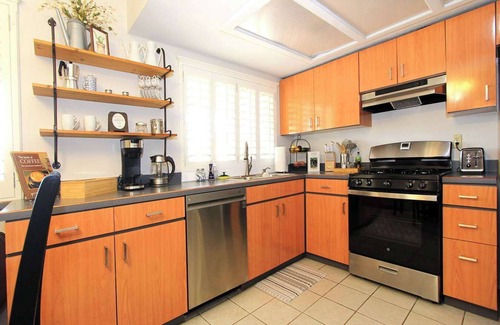 The kitchen is equipped with all the standard kitchen gadgets to help you in your culinary endeavors: oven/stove, refrigerator, microwave, k-cup coffee maker, toaster, tea kettle, knife set, cooking utensils, blender, electric beater, etc. There’s also a backyard BBQ propane grill at your disposal.