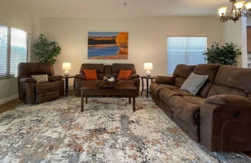Our home is the perfect escape for families, couples or friends. A three-minute walk to a large park with long stretches of greenbelts is perfect for an afternoon at the park, picnics under a tree, or a nice walk on one of the many walking paths located throughout the neighborhood. We are minutes away from Lake Pleasant Regional Park where you can rent boats, jet skis and paddle boards. Looking to get a hole in one? We are surrounded by beautiful golf courses including Quintero Golf Club. Only 25 minutes away from State Farm Stadium!