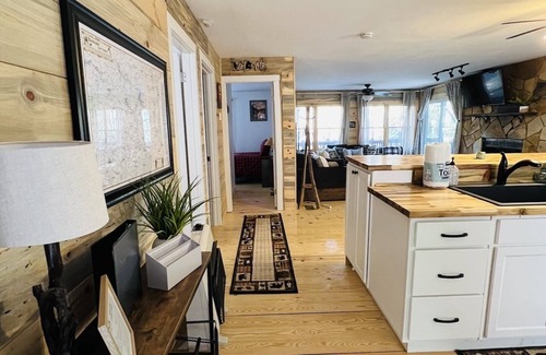 The creekside firefly cabin is a quite 2 bedroom, 1 bath cabin with tranquil sounds of rushing water from the creek that is just steps off the front deck. Enjoy the yard that consists of a firepit and ladder ball. Sit in the rocking chairs on the deck over looking the creek, enjoy and outdoor meal on the gas grill and outside dining table. Inside the cabin with will find a 50" UHD smart TV and a 43" UHD smart TV in each bedroom. Remember that we are in the mountains so the internet in the area isn't what you typically find I the city. There is wifi at 25mbps and able to stream all three TV simultaneously without buffering. Bring you owns passwords and have access to all your favorite streaming channels. The kitchen is fully stocked with all the dishes, pots, pans and utilsels you'll need to cook a meal, while the open concept floor plan is great for gathering and spending time together. Cozy up next to the electric fireplace and enjoy the rural feel this waterfront cabin boasts. We are a pet friendly cabin and allows dogs for a small fee.