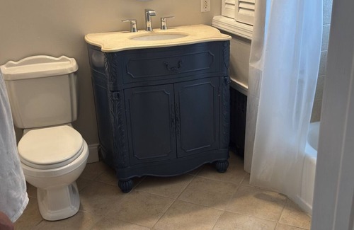 Are you painting your home or doing your floors and have pets? Do you have home construction that needs you out of the house during the day and you take calls? Come work or stay in this spacious and quiet house. This is a lovely 3 bedroom 1.5 bath house on a quiet block with a private green yard. There is a working kitchen and washer and dryer but no furniture except for two tables and two benches. Bring your air mattresses and linens and stay for a while!