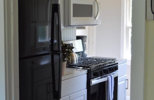 The kitchen is fully stocked for everyday meal prep. Dishes, pots and pans, silverware, glasses, etc. and a drip coffee maker is available for guest use. Additional kitchen items include microwave and toaster. Also included: bed linens, bath towels, basic cleaning supplies, and soaps (not personal soaps), and a starter set of paper products.