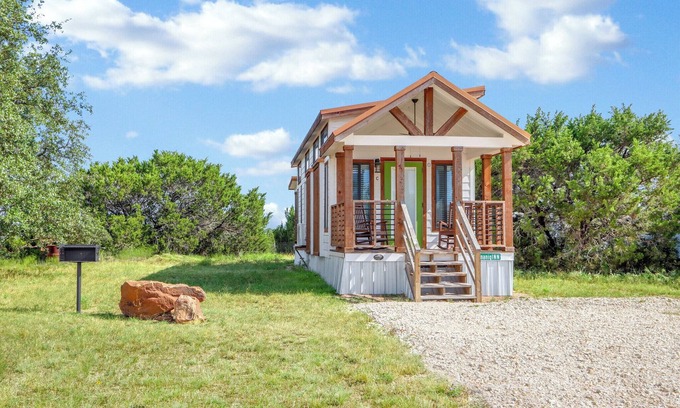 Pet-Friendly Farmhouse Tiny Home w/Private Deck is located in Lampasas. Pet-Friendly Farmhouse Tiny Home w/Private Deck provides accommodation, featuring Balcony/Terrace, Security/Safety, Bedding/Linens, among other amenities. This House features Balcony/Terrace, Security/Safety, Bedding/Linens, to make your stay a comfortable one.