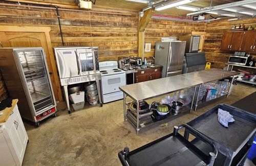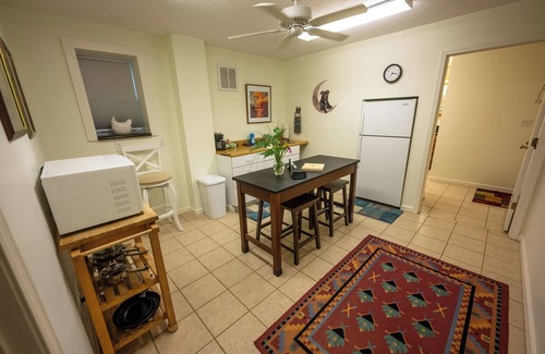 Fido's Flat sleeps 4 and is a pet-friendly unit. This lodging is located on beautifully manicured grounds with an abundance of diverse plantings. Inside you will find a tastefully decorated living room with a kitchenette and queen-size pull-out bed; a bedroom with a queen-size bed and second TV, and a large bathroom with closets. For guests requiring a more comprehensive cooking experience, the stables kitchen is made available to all overnight guests and is a fully equipped kitchen.