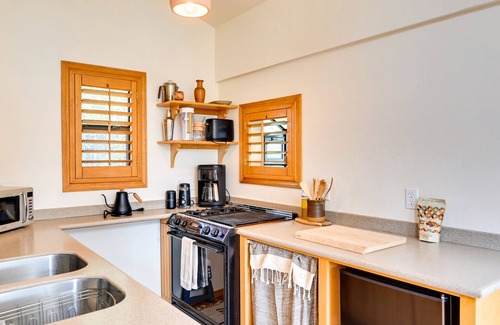 Roast marshmallows over the fire pit at this Flagstaff vacation rental studio cabin! Originally owned by Mark Thatcher, ‘Teva Guest House’ offers 1 king bed, 1 full bathroom, and a minimalist style. When you arrive, wander inside to find a Smart TV in front of 2 sofas, along with a kitchenette. After you settle in, visit one of the local museums before exploring Picture Canyon Natural and Cultural Preserve. Then, return to this cozy getaway to unwind out on the porch and gaze at the stars.