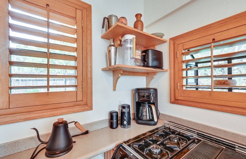KITCHENETTE: Mini fridge, stove/oven, microwave, coffee maker, hot water kettle, dining table, cooking basics, dishware & flatware, toaster
