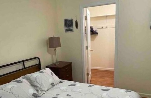 Access into backyard/patio/grill is through the primary bedroom out the sliding glass door.