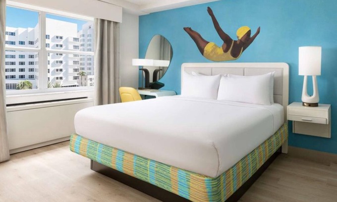Hotel Continental Miami Beach places you right on iconic Collins Avenue, steps from the ocean and just minutes from South Beach’s buzzing energy. This 1 King Bed room offers a spacious layout, modern decor, and daily bottled water for a refreshing stay. Guests enjoy perks like beach chairs, a food and beverage credit, and access to beach bikes.