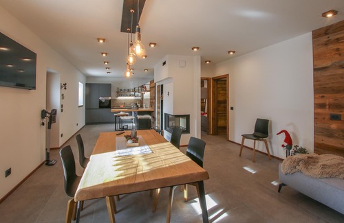 Discover the beautiful Tesino Valley on a vacation in this modern semi-detached house surrounded by beautiful mountains.
