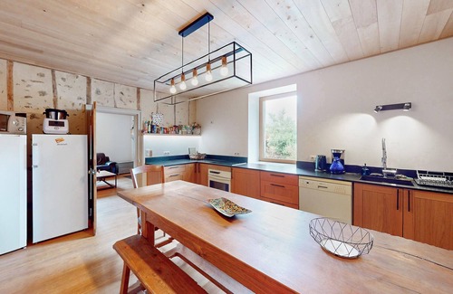 This lovingly renovated holiday home combines historical charm with modern comfort. Exposed half-timbering, stone and brick walls lend the large, open-plan rooms a warm and inviting atmosphere. Linger in the fireplace room, enjoy meals together in the spacious dining kitchen or read bedtime stories in the cosy children's bedroom under the roof. The table tennis table is ideal for active hours, and you can enjoy the tranquillity of the surrounding nature on the terrace or in the garden.