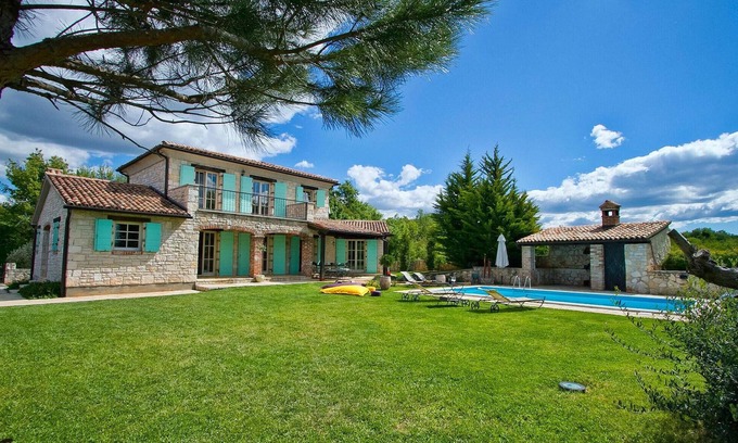 Beautiful, tastefully furnished vacation home for your dream vacation. The vacation home offers luxurious accommodation in 3 bedrooms, which have been furnished with special attention to detail. At every turn you will find objets d'art that blend with the relaxing atmosphere of the house. The vacation home is well equipped and well maintained. It offers an enclosed parking area for two vehicles. Enjoy the large swimming pool and refresh yourself on hot Istrian summer days. The house is air-conditioned and offers satellite TV and Wi-Fi as well as a security system for our guests. The vacation home is situated in a beautiful location on the edge of a small Istrian village. It offers privacy and tranquility and is ideal for a relaxing, peaceful family vacation.Central Istria is one of the rare Mediterranean regions characterized by the quality of its unspoiled natural landscapes and rich heritage. Numerous bays and hills connect and separate numerous enchanting settlements, creating an almost unreal landscape.