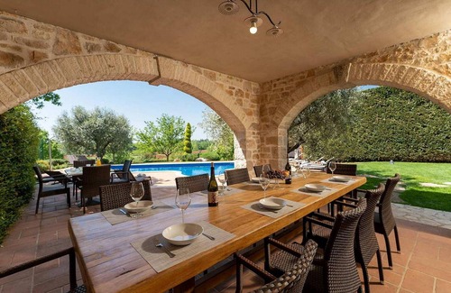This elegant and comfortable property in the Vizinada area offers a luxurious retreat. Set in a fenced plot, this property is owned by a renowned winemaking family known for producing some of the best wines in Croatia. The property includes two beautifully renovated stone houses, a swimming pool with jacuzzi, a multifunctional sports field and ample parking.
