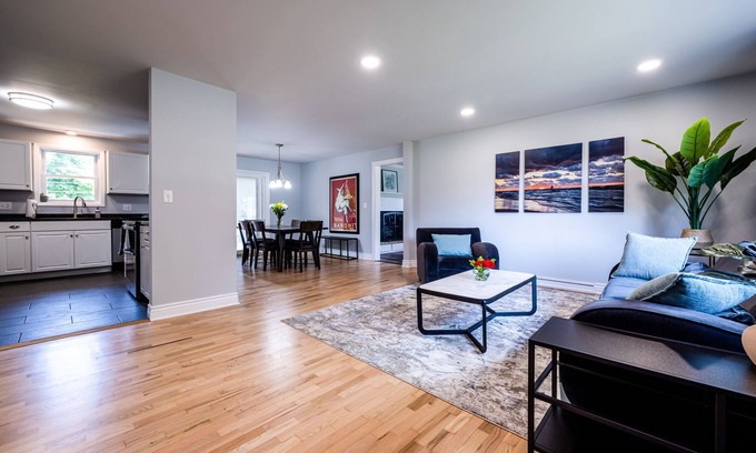 This newly renovated pet-friendly home near Lake Michigan with a fenced-in backyard is an excellent choice for your wedding stay, offering a blend of comfort and scenic beauty that will enhance your special day.