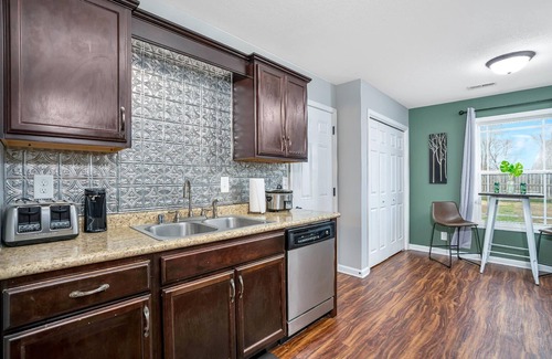 Our home features an open floor plan with stylish furnishings and modern amenities that create a warm ambiance. You'll find three spacious bedrooms, each equipped with a smart TV so you can unwind after a long day of wedding festivities. The fully equipped kitchen allows you to prepare delicious meals and share them in the adjoining dining area, perfect for enjoying time with family and friends. The fenced backyard offers a private outdoor space where you can host small celebrations or simply let your pets roam freely. Plus, the convenience of self-check-in means you'll have the flexibility to arrive and settle in on your schedule.